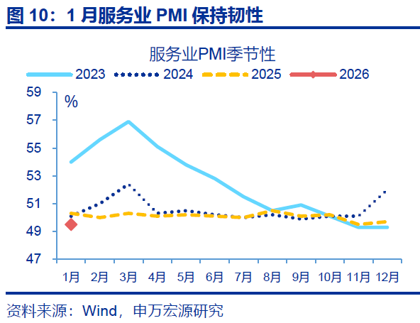 春节错位或扰动1-2月PMI读数,但平均来看,开年经济预计仍呈现修复态势。春节对制造业、建筑业景气的扰动已有体现,而2026年春节滞后于2月,短期来看,PMI或维持偏弱态势。但平均来看,近两月PMI指数仍延续前期修复态势,或反映开年经济良好。结构上春运出行、假期消费或对服务业预期指数形成支撑,叠加促进服务消费相关政策落地下,服务业景气或呈现回升态势,近期重点关注居民需求相关领域的景气变化。