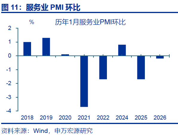 春节错位或扰动1-2月PMI读数,但平均来看,开年经济预计仍延续修复态势。春节对制造业、建筑业景气的扰动已有体现,1月制造业、建筑业PMI明显回落;而2026年春节滞后于2月,短期来看,制造业、建筑业景气或延续偏弱态势。但平均来看,近两月PMI指数仍延续前期修复态势,或反映开年经济良好。结构上春运出行、假期消费或对服务业预期指数形成支撑,叠加促进服务消费相关政策相继落地下,服务业景气或呈现回升态势,近期重点关注居民需求相关领域的景气变化。